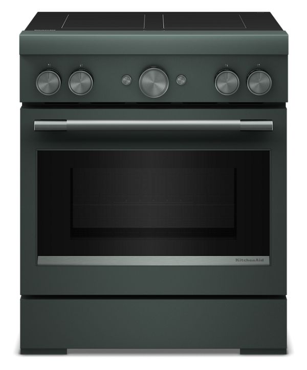 This KitchenAid® 4.1 cu. ft. 30-inch 4-Element Induction Slide-In Convection Range combines the precision of induction with the power of Air Fry. Sensor-induction cooktop generates heat directly within cookware, and the oven features Even-Heat™ True Convection plus air fry mode that aids in crisping and browning.